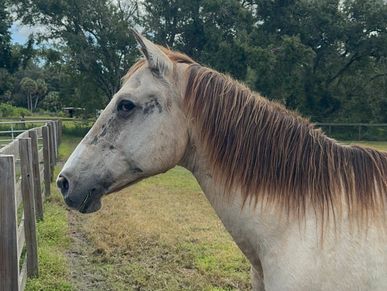 Bailey has been a lesson and therapy horse for many years. Her kind and gentle demeanor make her a favorite for littles and volunteers. Bailey has a forward, rhythmic walk which is sooting for the nervous system. She is an amazing partner - always willing to help out in any session and takes care of her riders like a grandma! In the herd, she is also known as the boss lady!
