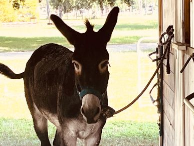Ricky is the protector of the herd and a trusted friend and companion to his BFF, Ice. Ice and Ricky have a unique bond and you will often find them sharing their hay in the same stall or resting together in the pasture. Ricky gets quite vocal when they are not together and his bray can be heard all over town. He is gentle and affectionate with a special love for children. Ricky enjoys being included in activities with the after-school kids and he LOVES music! His long ears are a favorite for petting as is his super soft muzzle!